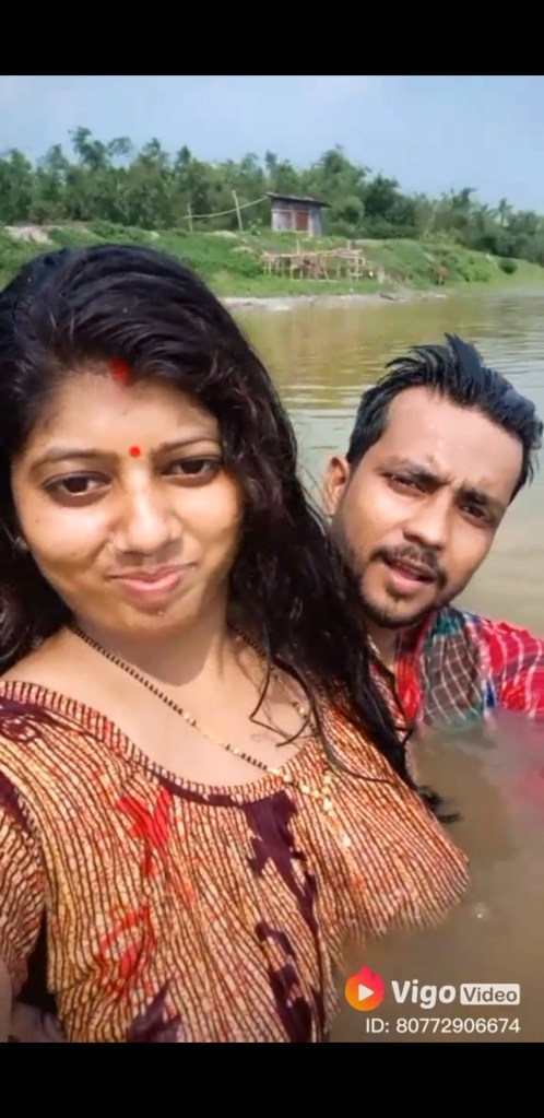 Bangladeshi bhabhi in lake bath with husband friend